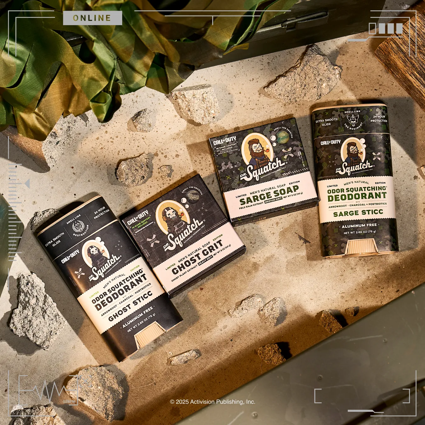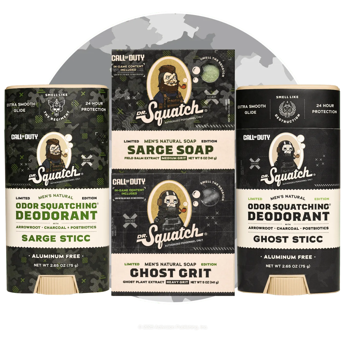 Get ready for action with the Call of Duty 4-pack featuring a fearless foursome of Ghost Grit and Ghost Sticc plus Sarge Soap and Sarge Sticc.