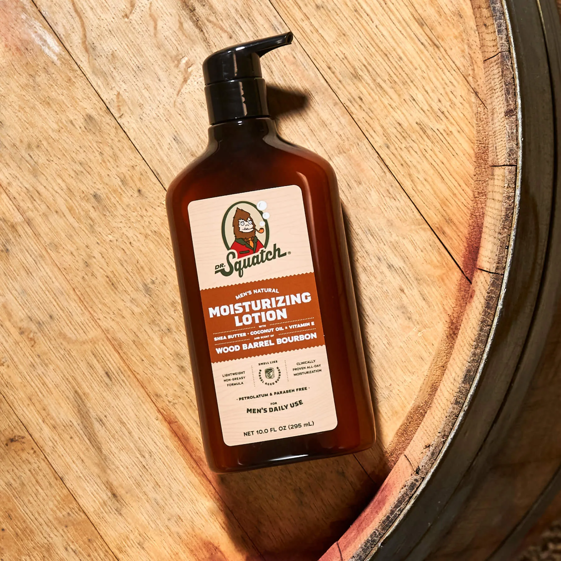 Moisturize and maintain with the manly scents of oak, bourbon, and spice.
